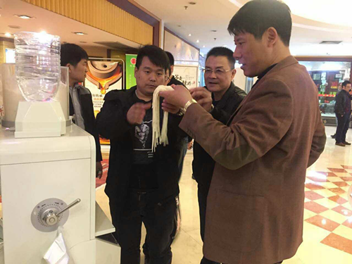 當了解智能鮮面機的工作原理、現場觀看制面過程、品嘗現制鮮面條后,參觀者都對智能鮮面機安全、衛生、快捷的特點贊不絕口;而當深入了解我們的商業模式之后,更是嘆服。一些有創新想法的快消品經銷商,已經躍躍欲試,準備開展合作大干一場。